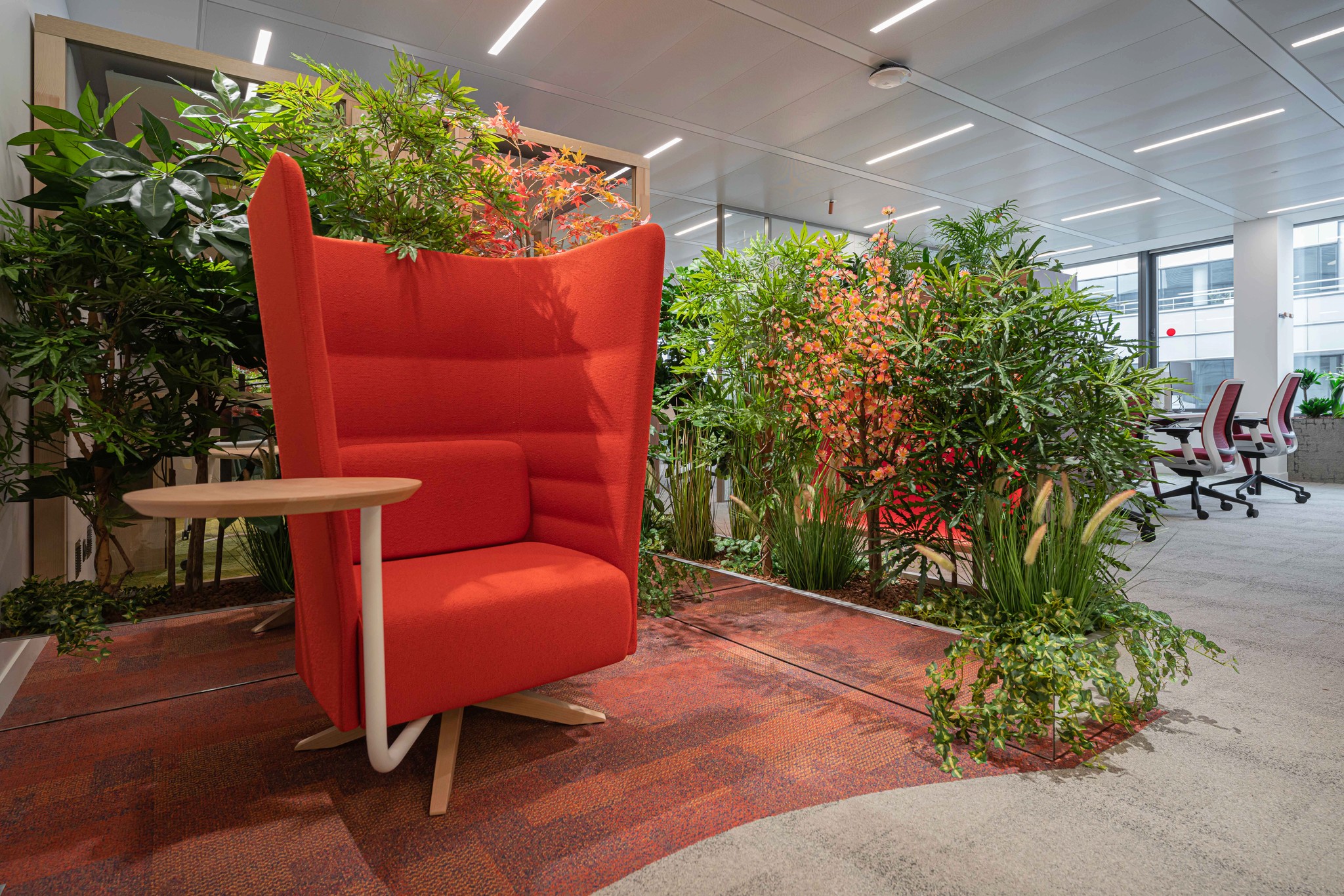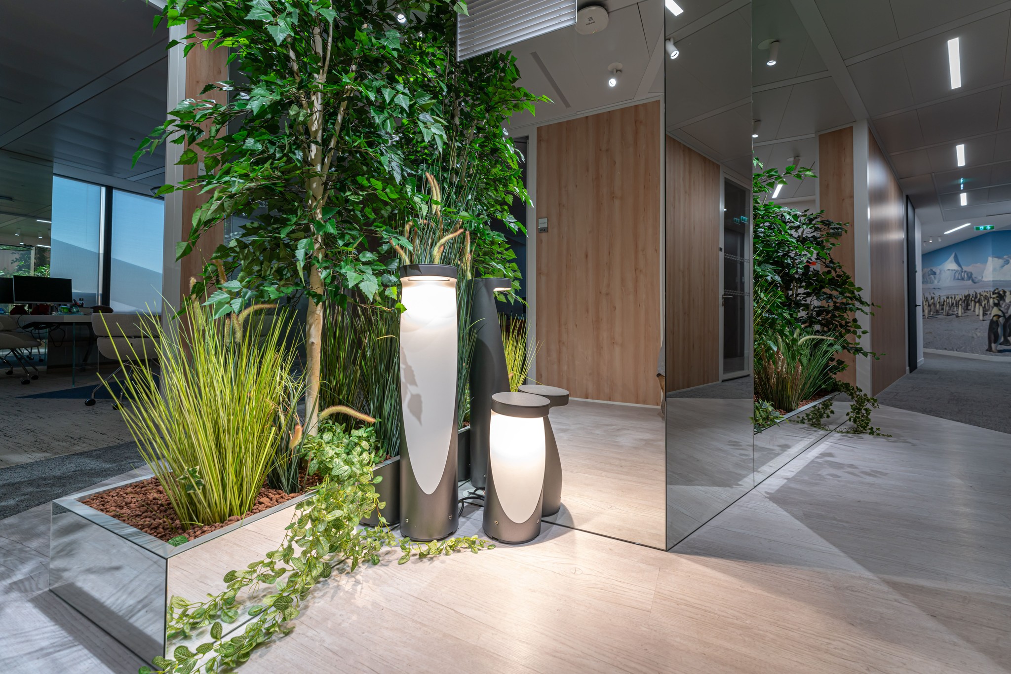 Des plantes soigneusement sélectionnées pour structurer l’espace, favoriser la concentration et apporter une touche naturelle au design.